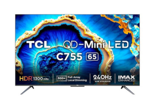 TCL 164 cm (65 inches) 4K Ultra HD Smart QD-Mini LED Google TV 65C755 (Black)